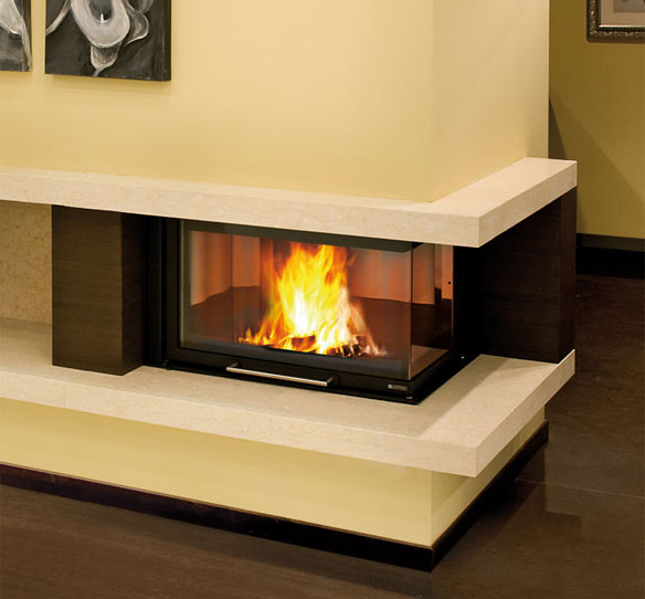 Acesta este un şemineu pe colţ cu funcţionare pe lemn al cărui corp este construit din oţel. Partea inferioară şi grătarele şemineului sunt din fontă, iar sticla este specială, vetroceramică, rezistentă la temperatură mare.